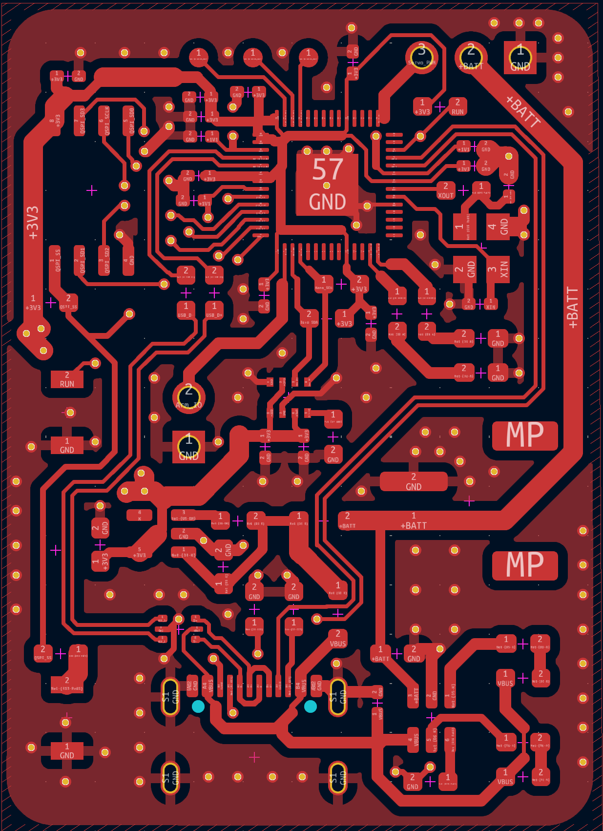 Dual-core ARM processor created by Raspberry Pi. I selected it because it is one of the most forgiving MCUs to layout, and easily programmable through a variety of workflows.